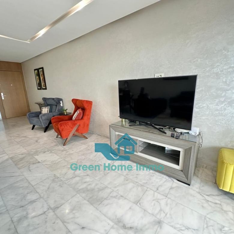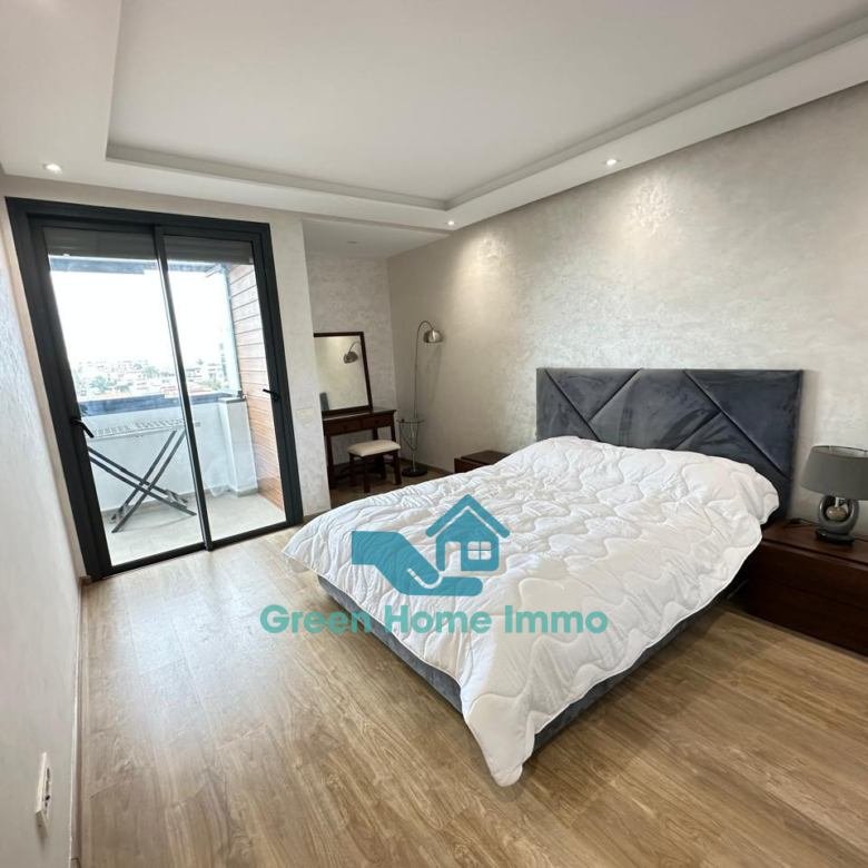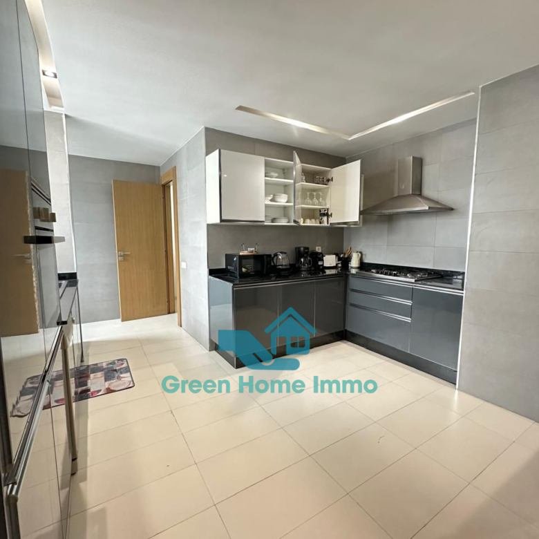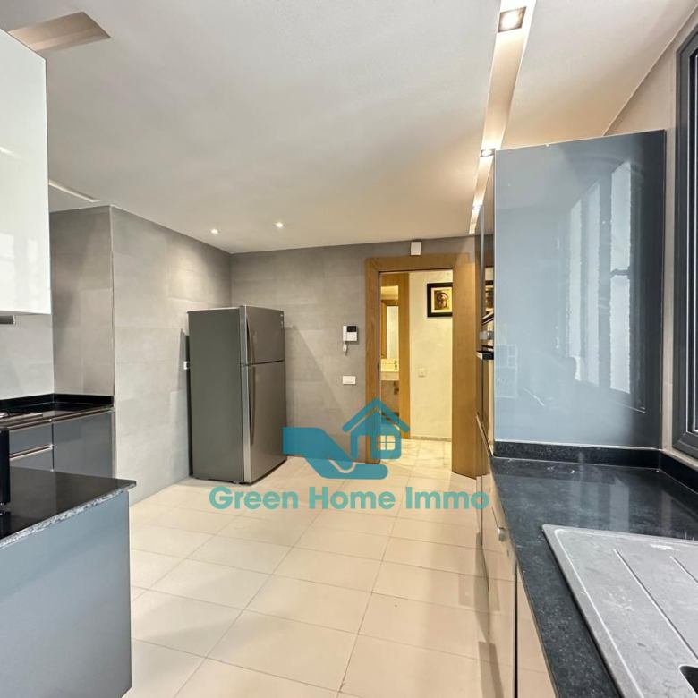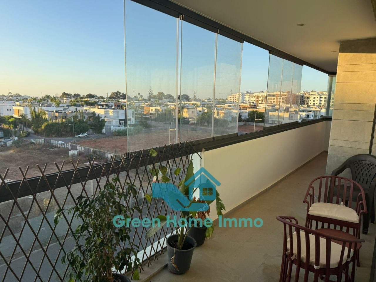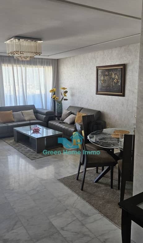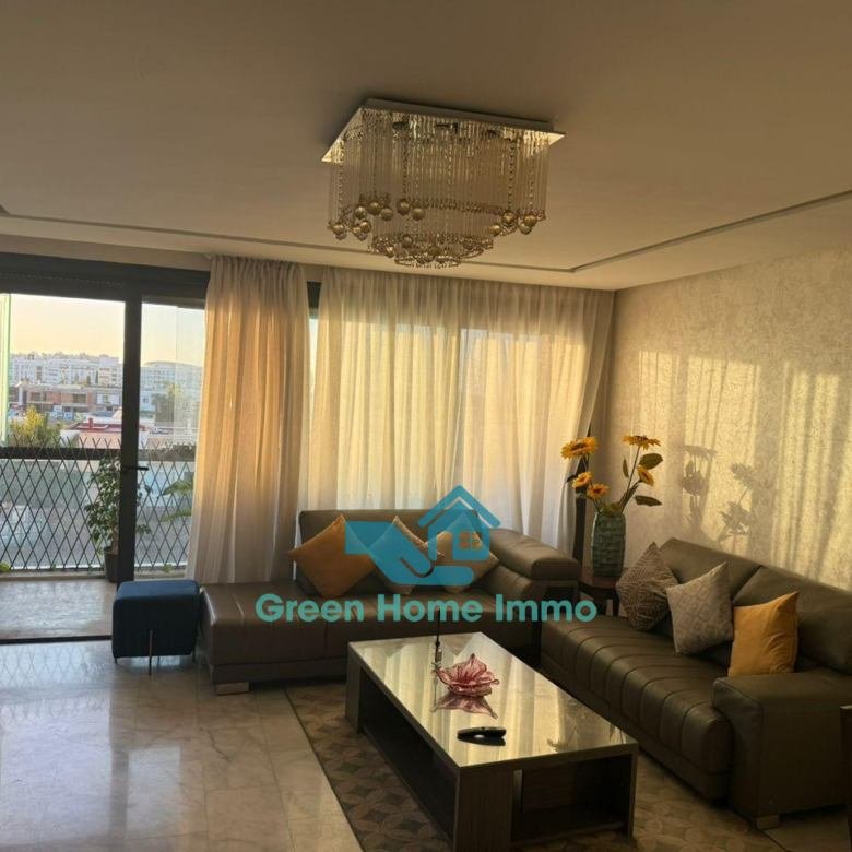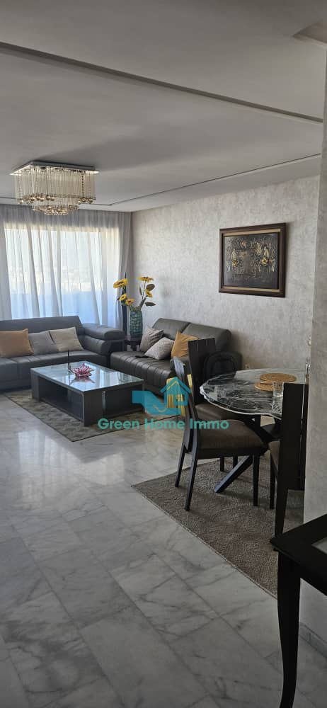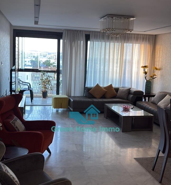 Magnifique appartement meublé haut standing d’une superficie de 170 m², situé dans une résidence sécurisée 24h/24 à Hay Riad. Entièrement équipé et décoré avec goût, il offre un confort exceptionnel et une luminosité optimale.