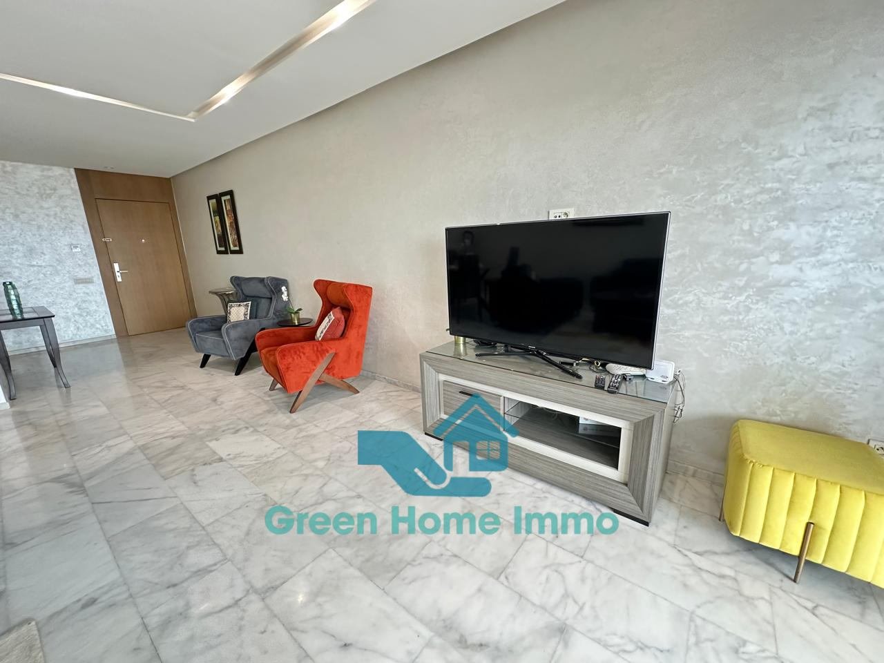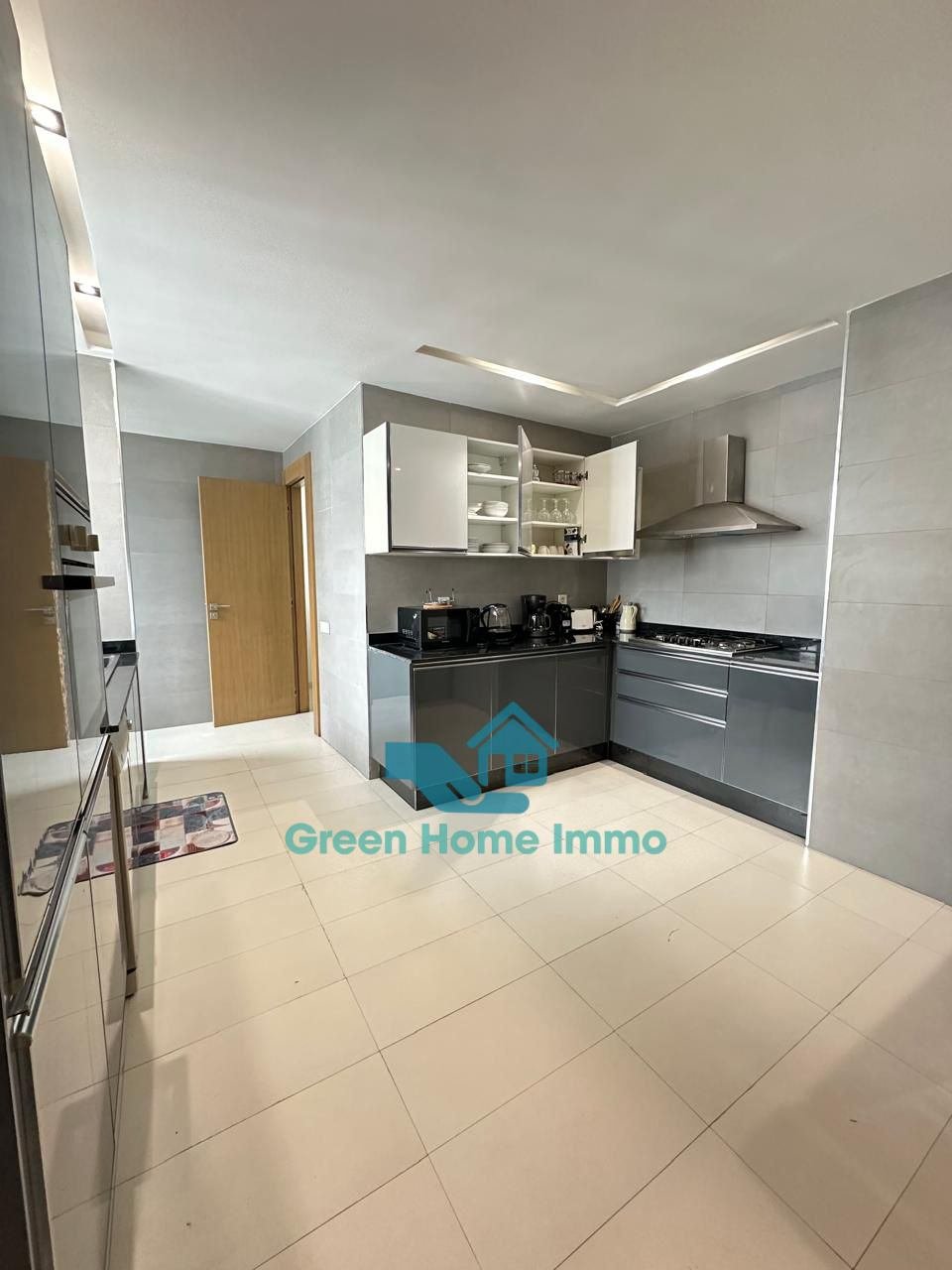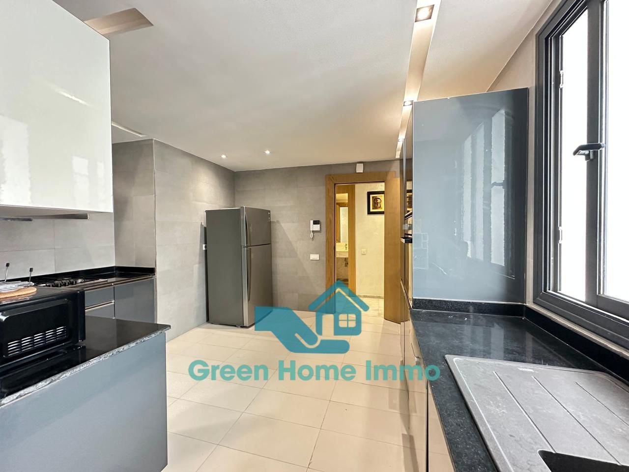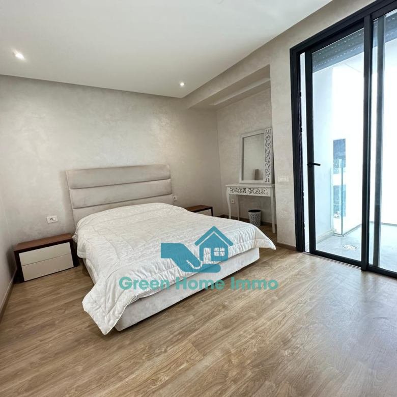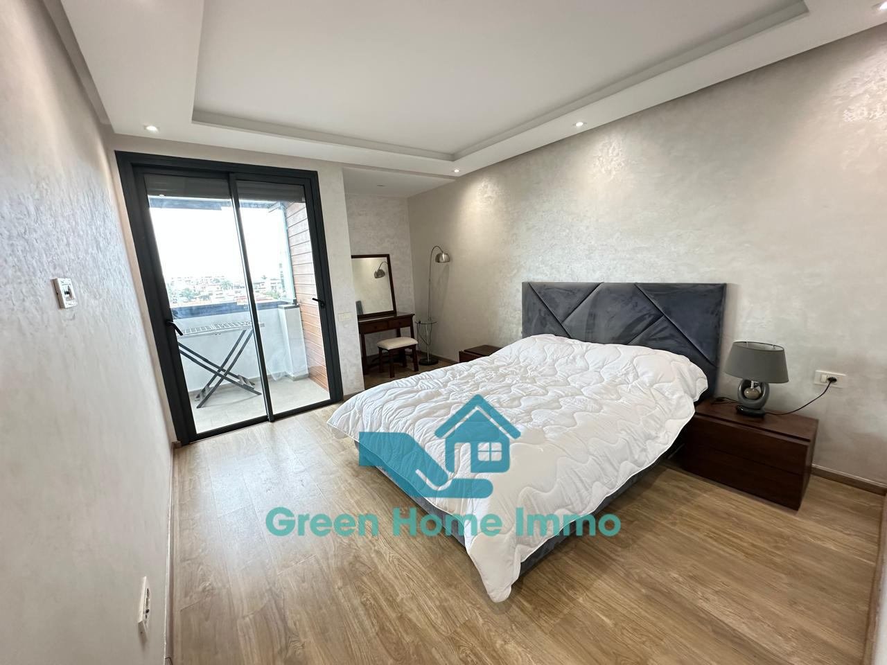 Magnifique appartement meublé haut standing d’une superficie de 170 m², situé dans une résidence sécurisée 24h/24 à Hay Riad. Entièrement équipé et décoré avec goût, il offre un confort exceptionnel et une luminosité optimale.