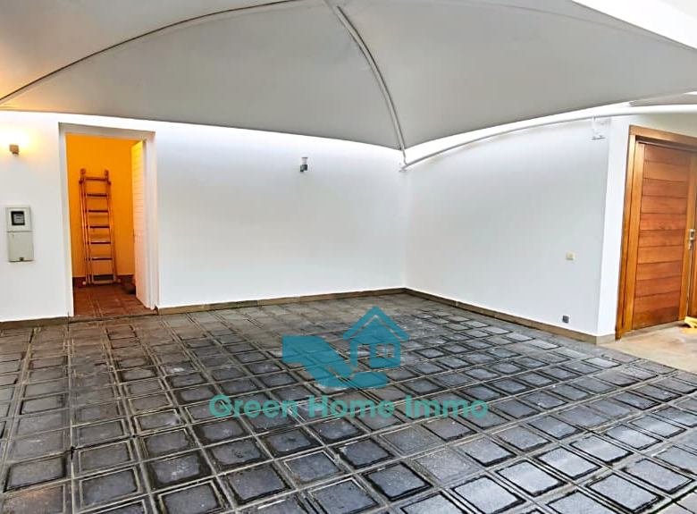 Garage avec porte électrique, chambre de gardien
