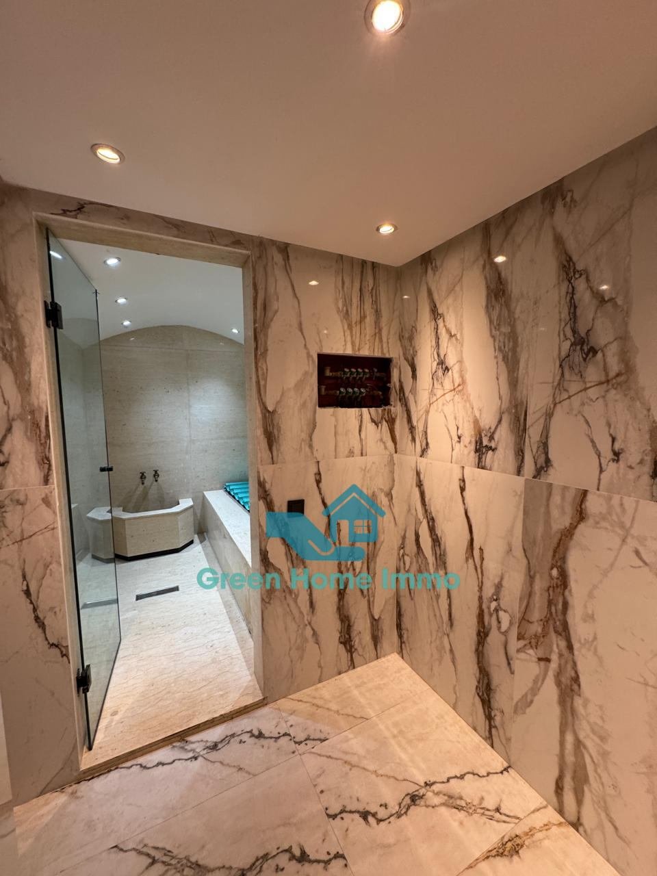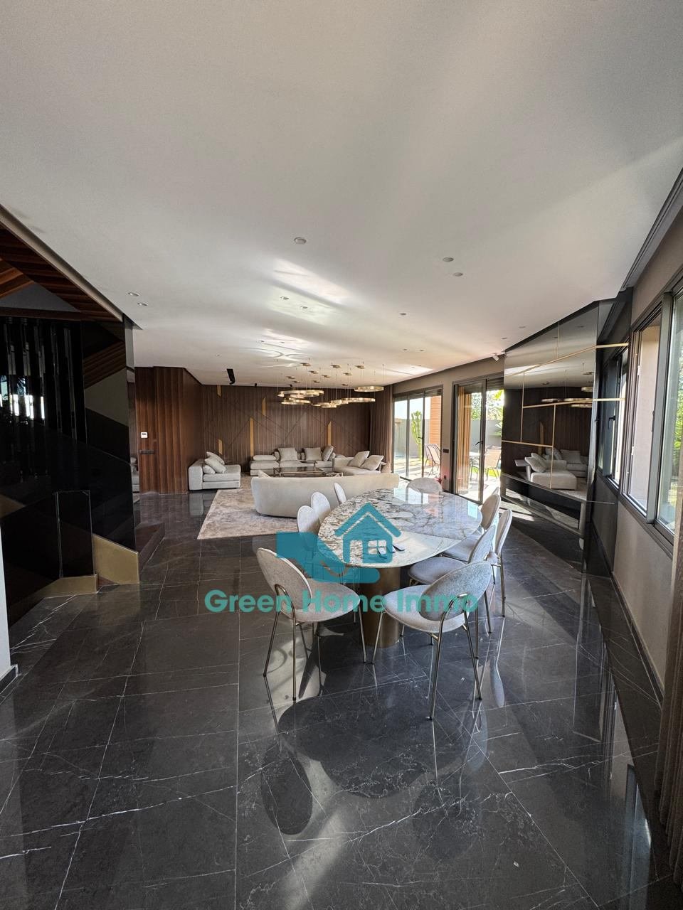 Sous-sol: salon avec télévision, une grande cuisine ouverte, une salle de jeux pour les enfants, un Hammam marocain avec salle de bain pour